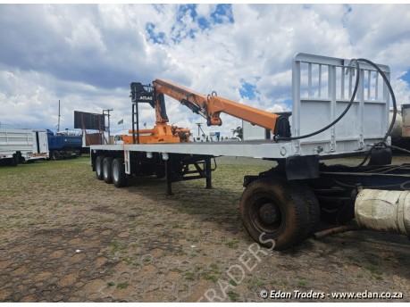 1995 Home built 12.2m Tri-axle Flat Deck trailer with atlas 168cs centre mounted crane